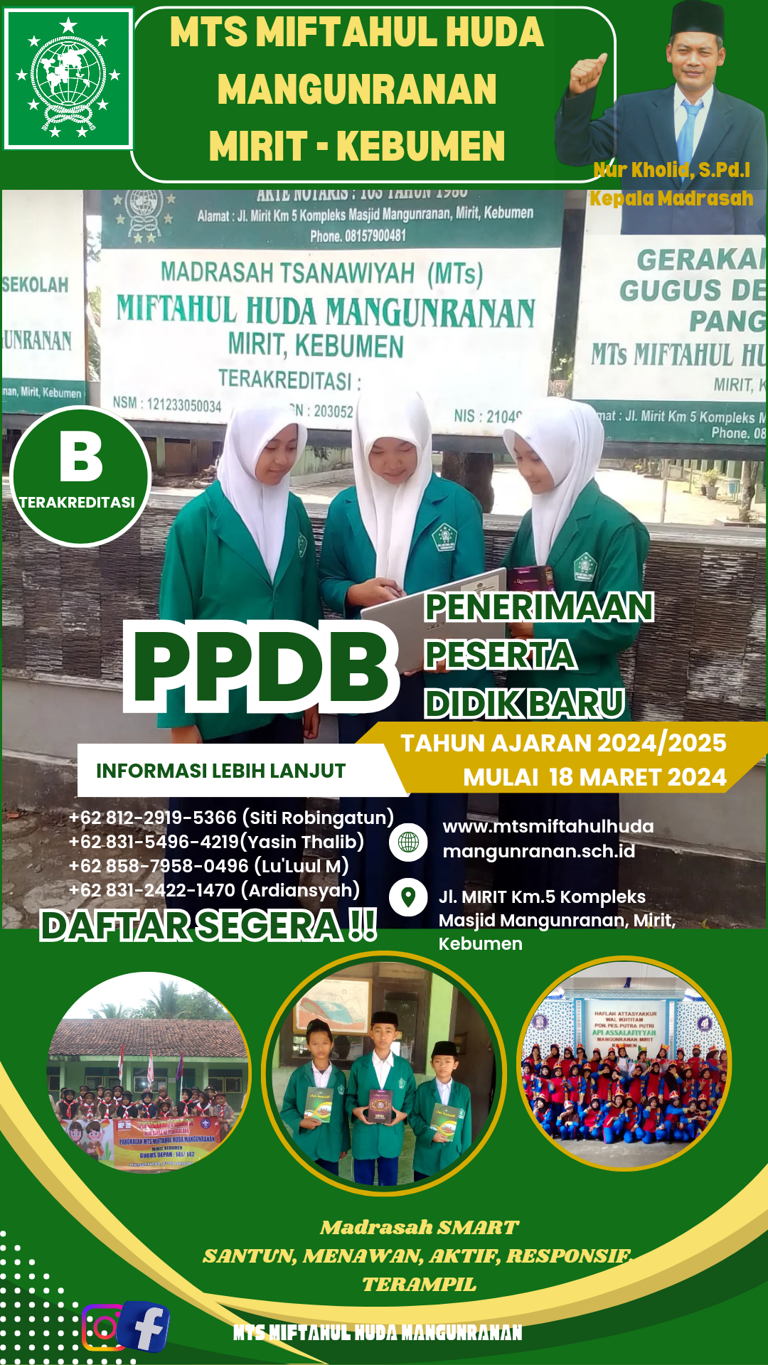 berdirinya MTs Miftahul Huda Mangunranan, kecamatan Mirit, Kabupaten Kebumen